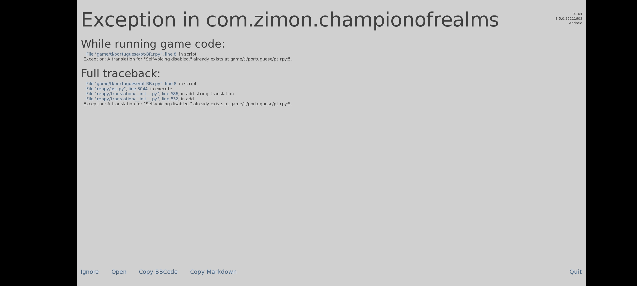 Exception: C:\Users\Nick\Downloads\project-cor-win-linux\ChampionOfRealms-0.104-pc/renpy/common/00layeredimage_ren.py and C:\Users\Nick\Downloads\project-cor-win-linux\ChampionOfRealms-0.104-pc/renpy/common/00layeredimage.rpy conflict, and can't exist in the same game.
