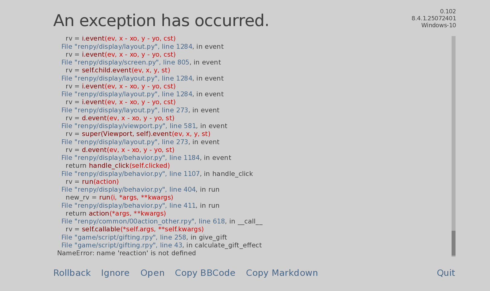 every time i offer her a gift the game gives me an error screen, nothing increases, her stats don't go up, and I end up wasting my coins...