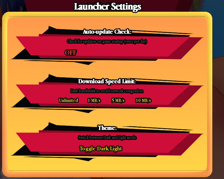 As you can see, now the launcher has a clear cache function, the possibility to do a integrity check, and a download speed limiter.