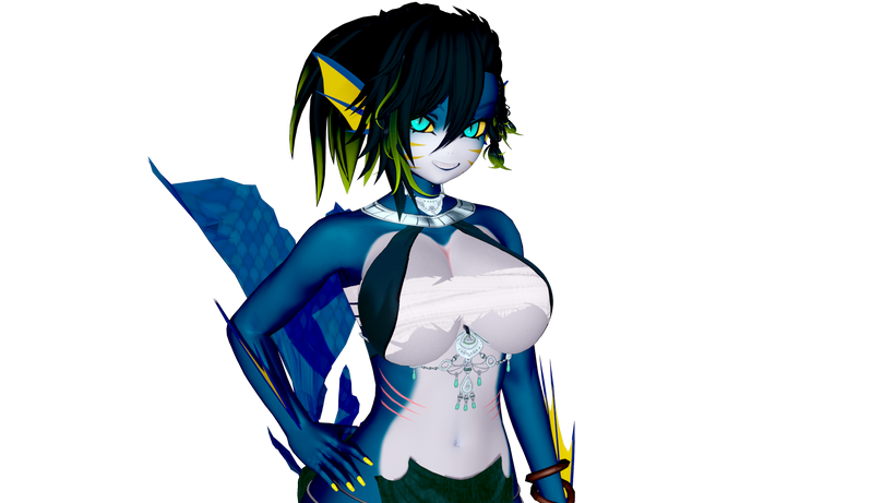 To emphasize her wild shark-like nature and make her more of a “wild tomboy” rather than having “cute and chubby” face, the second option looks like this: